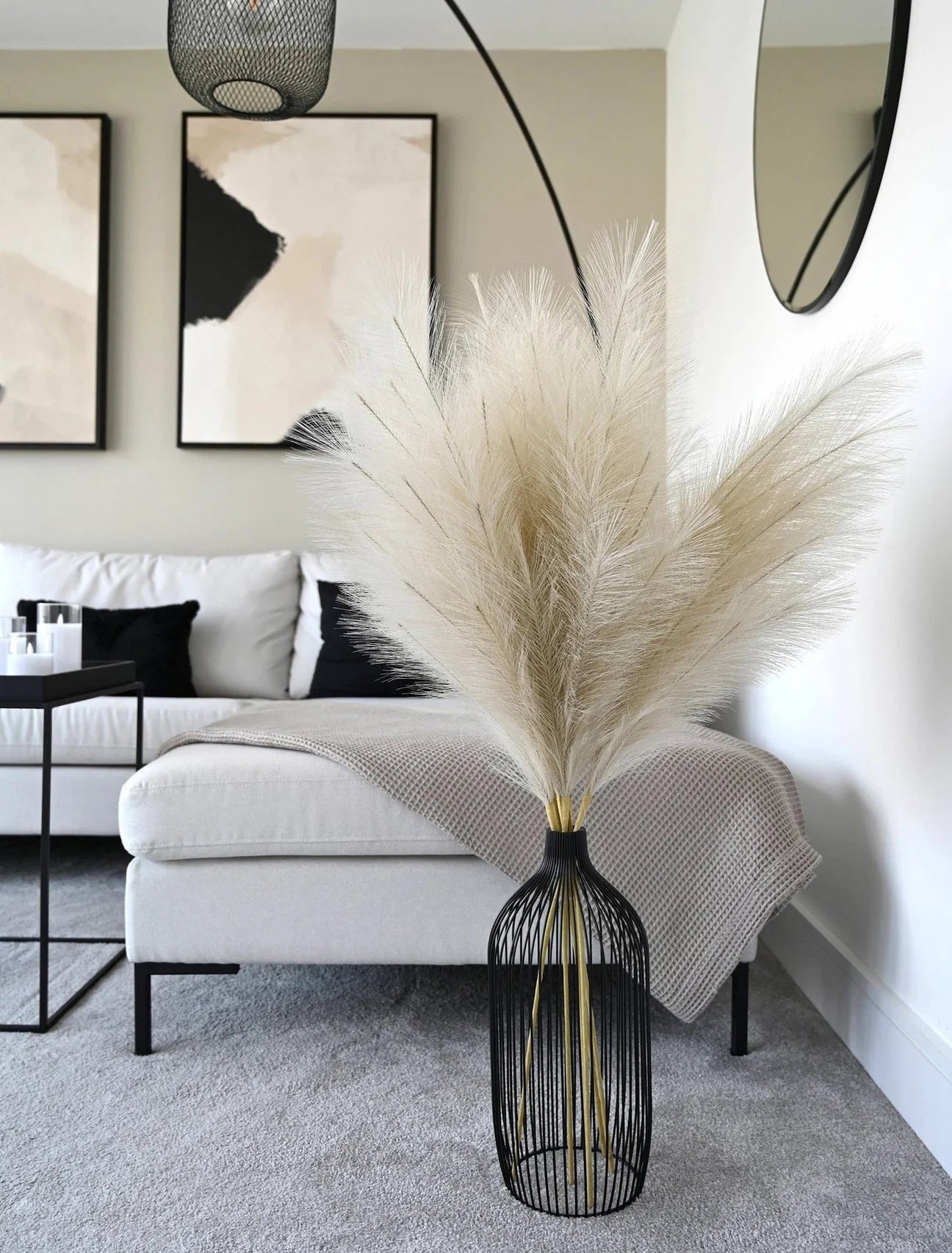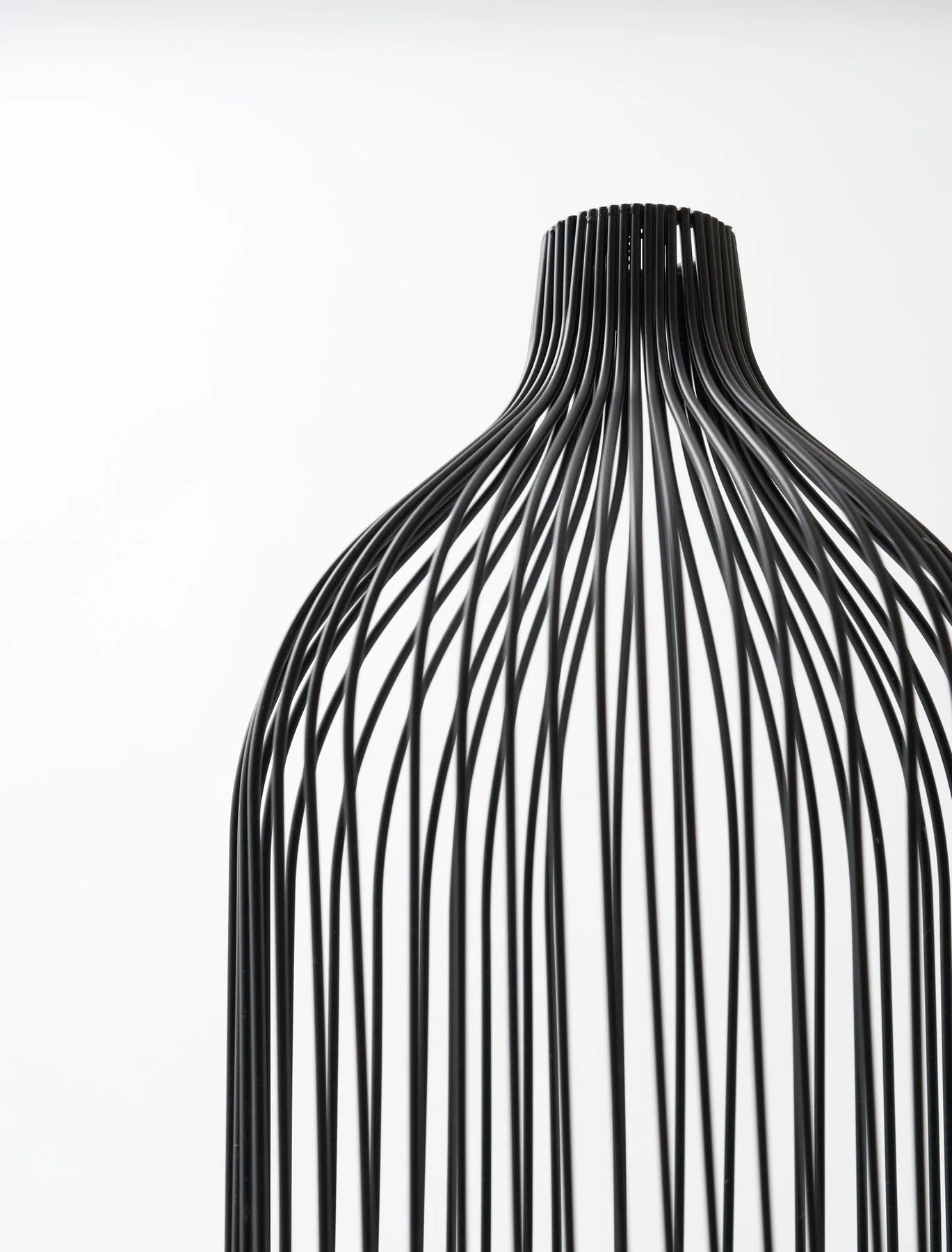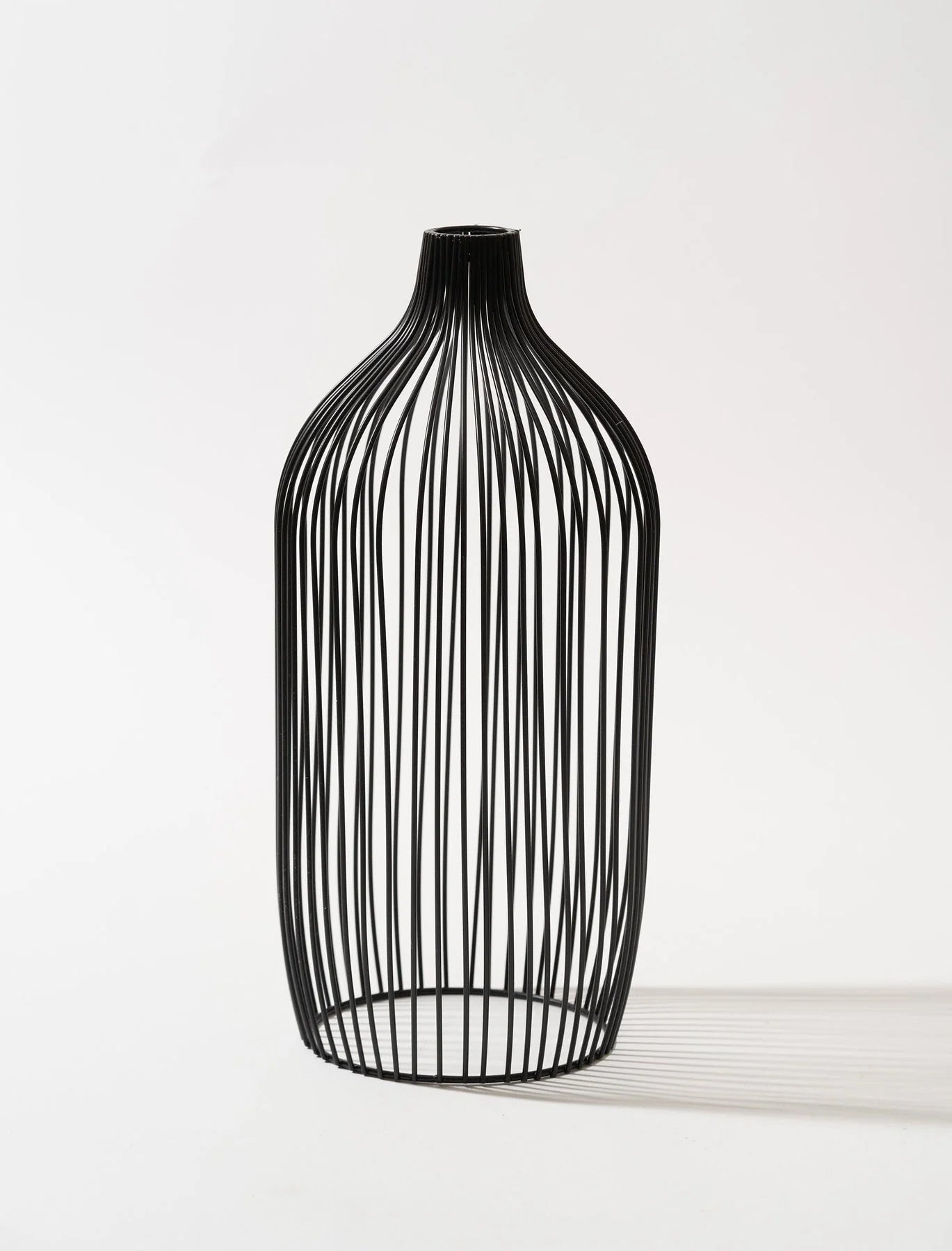 Nútíma hönnun - svartur vasi unninn úr málmi. Frábær viðbót fyrir heimilið þitt! Passar fullkomnlega með stærri típunni af Fluffy Sand stráunum okkar.