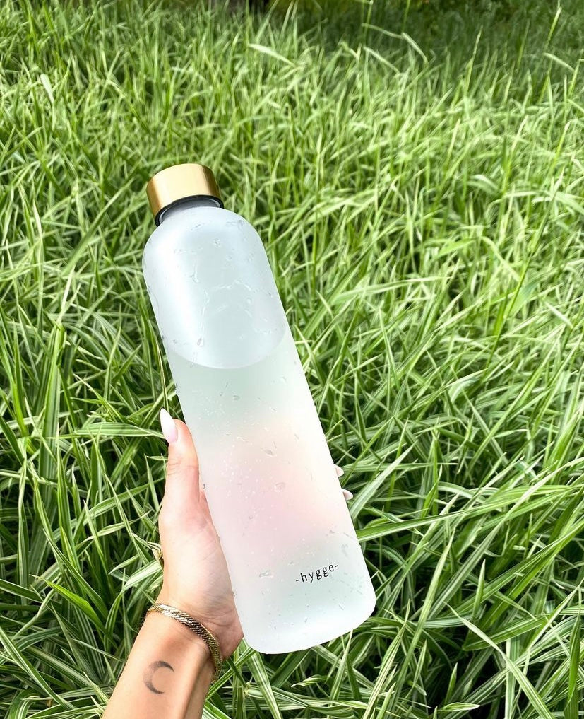 - Hyggeflaskan er hönnuð til að hjálpa þér að drekka meira vatn og halda að þér vökva.
