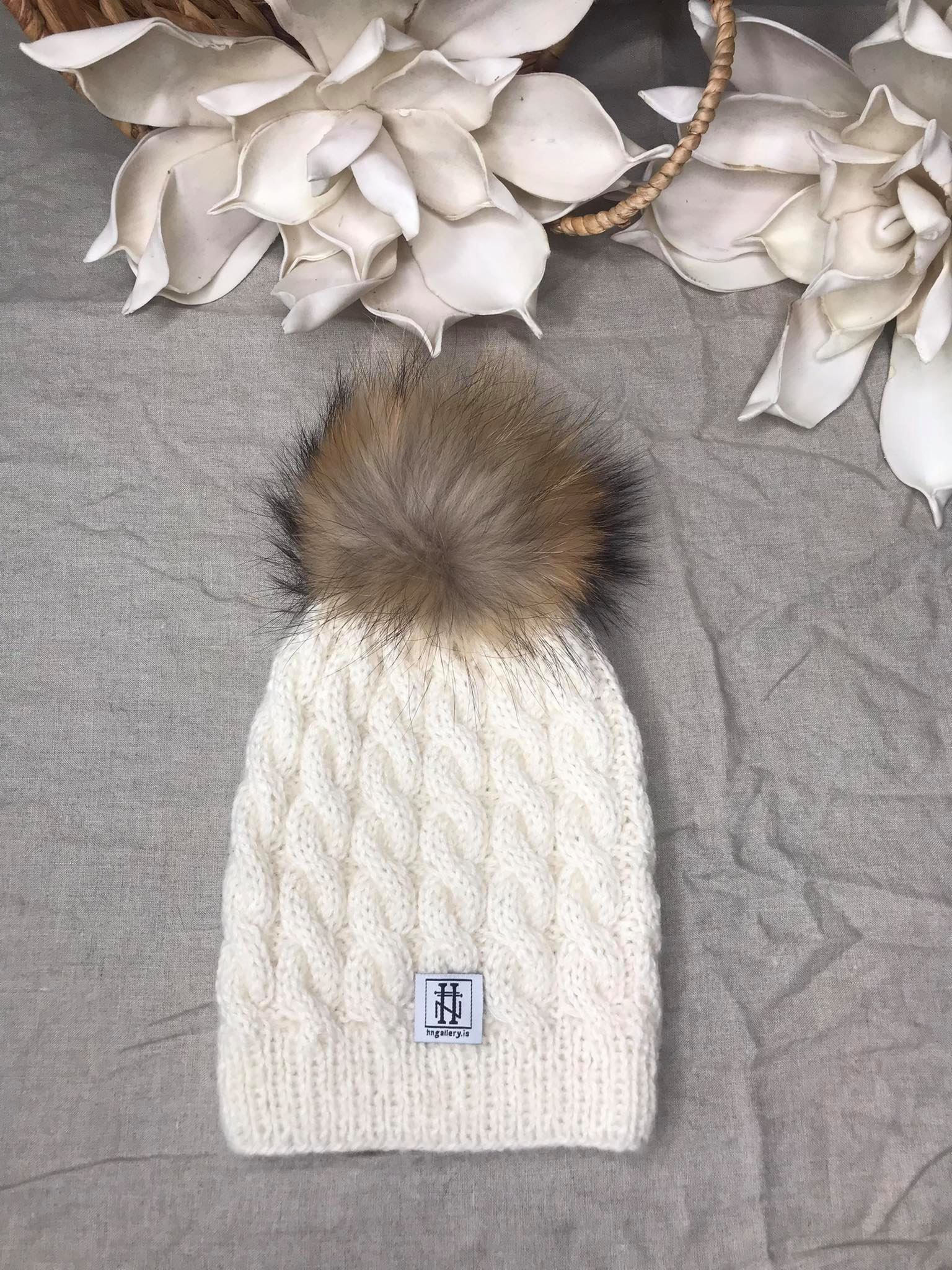 Vönduð handprjónuð kaðlahúfa úr mjúkri alpakka ull og silki mohair þræði. Húfan er hlý, mjúk og heldur sér vel. Hún er með ekta dúsk sem hægt er að smella af og þá er hægt að þvo húfuna á ullarþvotti í þvottavél. Húfurnar bera allar heiti úr íslenskri náttúru.