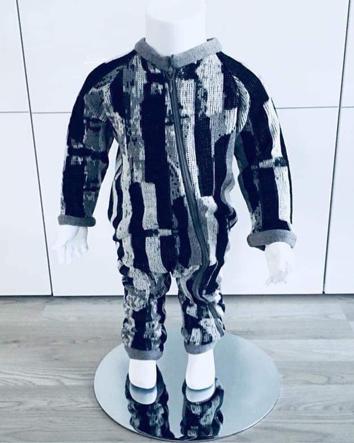 Yndislega mjúkur og góður barnagalli sem er saumaður úr ullarblöndu sem er vélprjónuð hér á Íslandi.