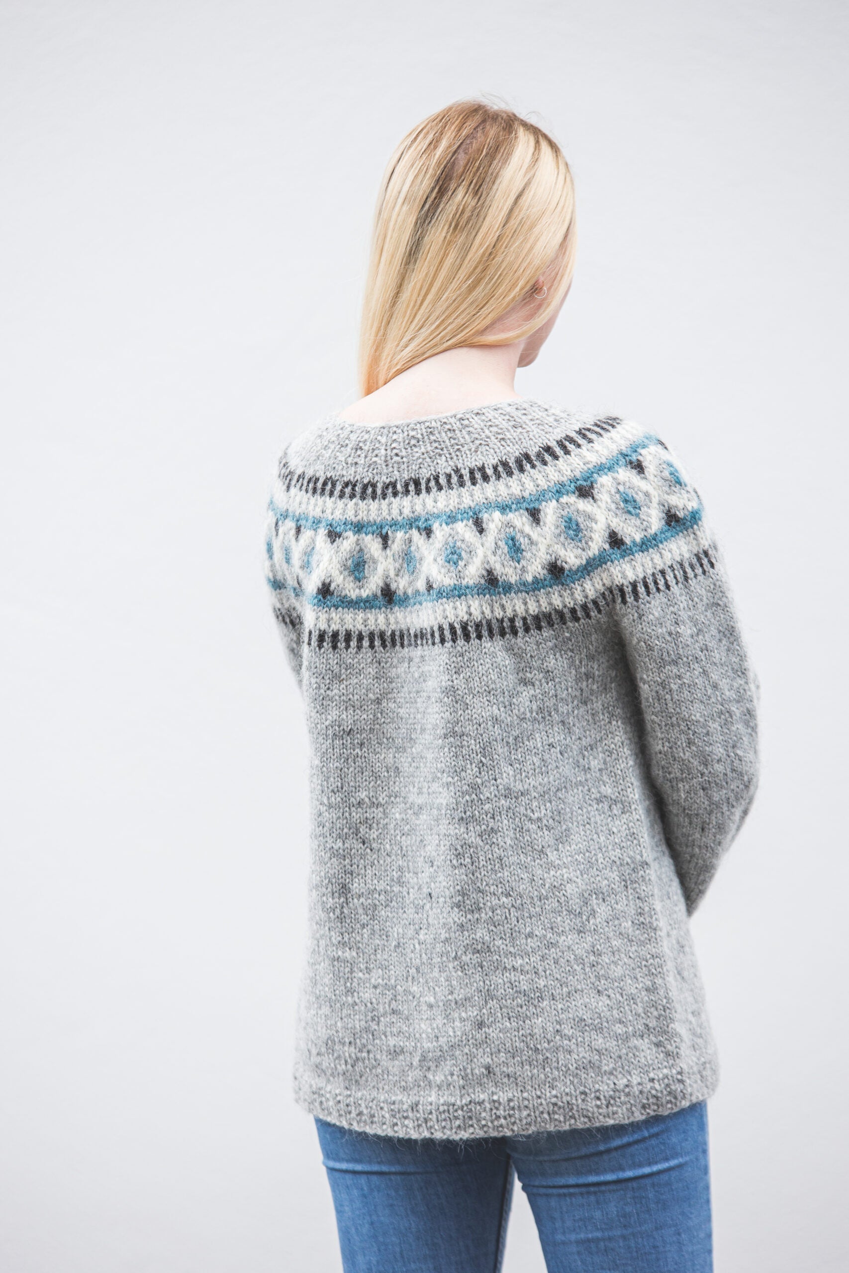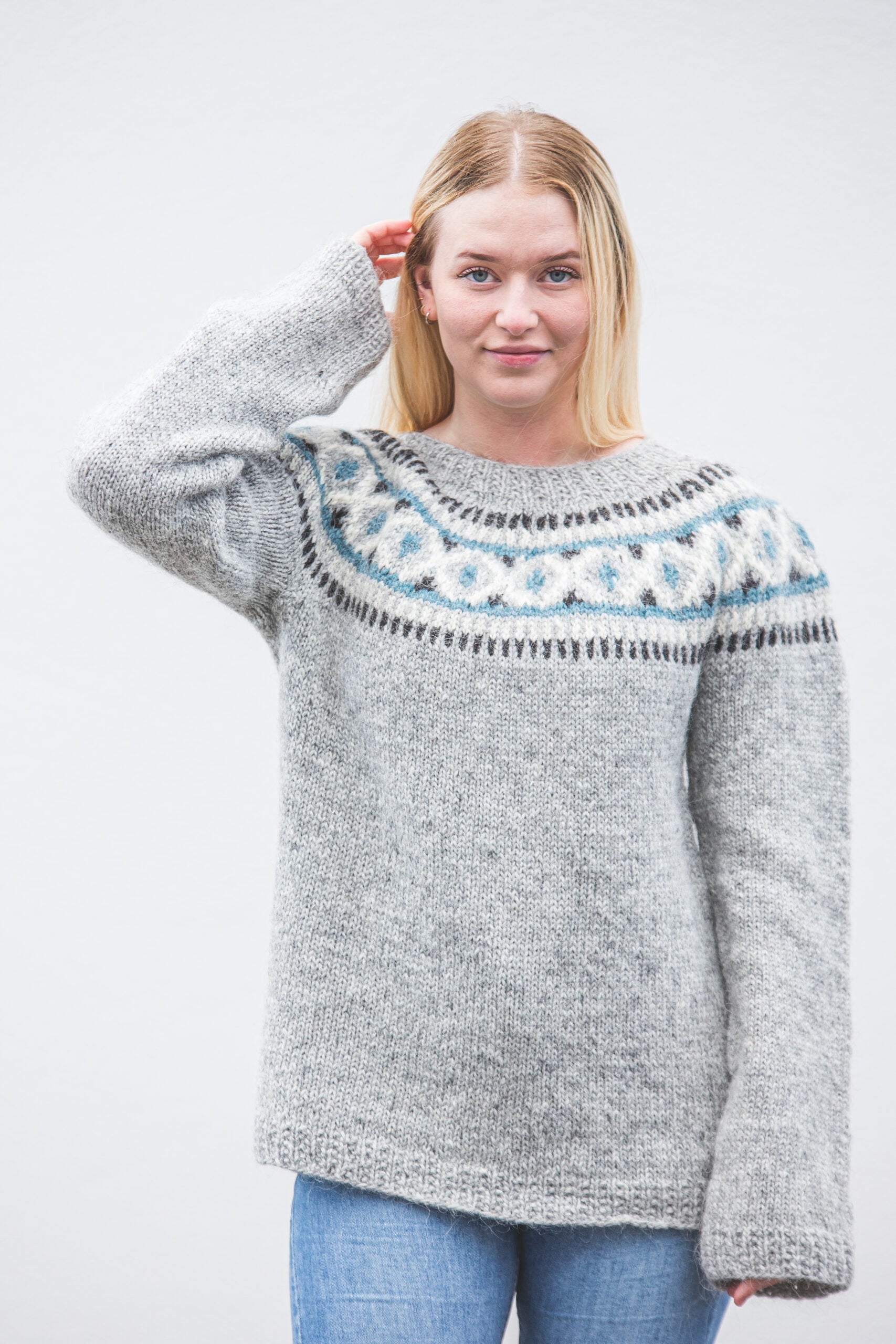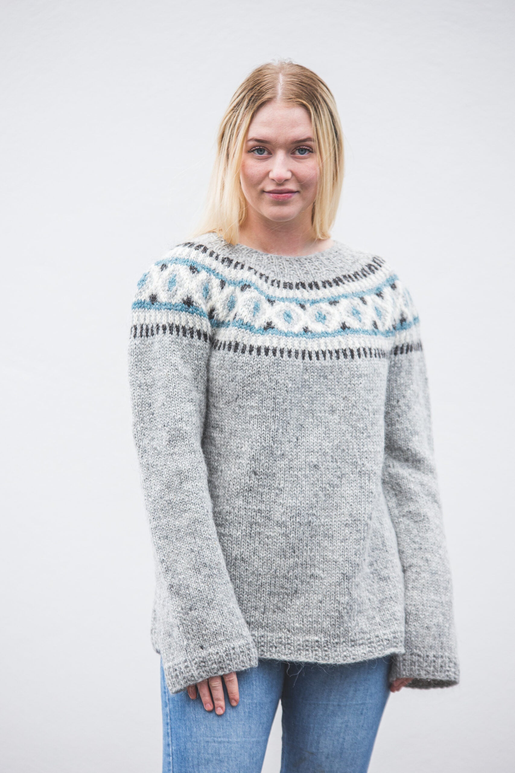 Létt, þægileg og einstaklega klæðileg handprjónuð lopapeysa úr íslenskum lopa.