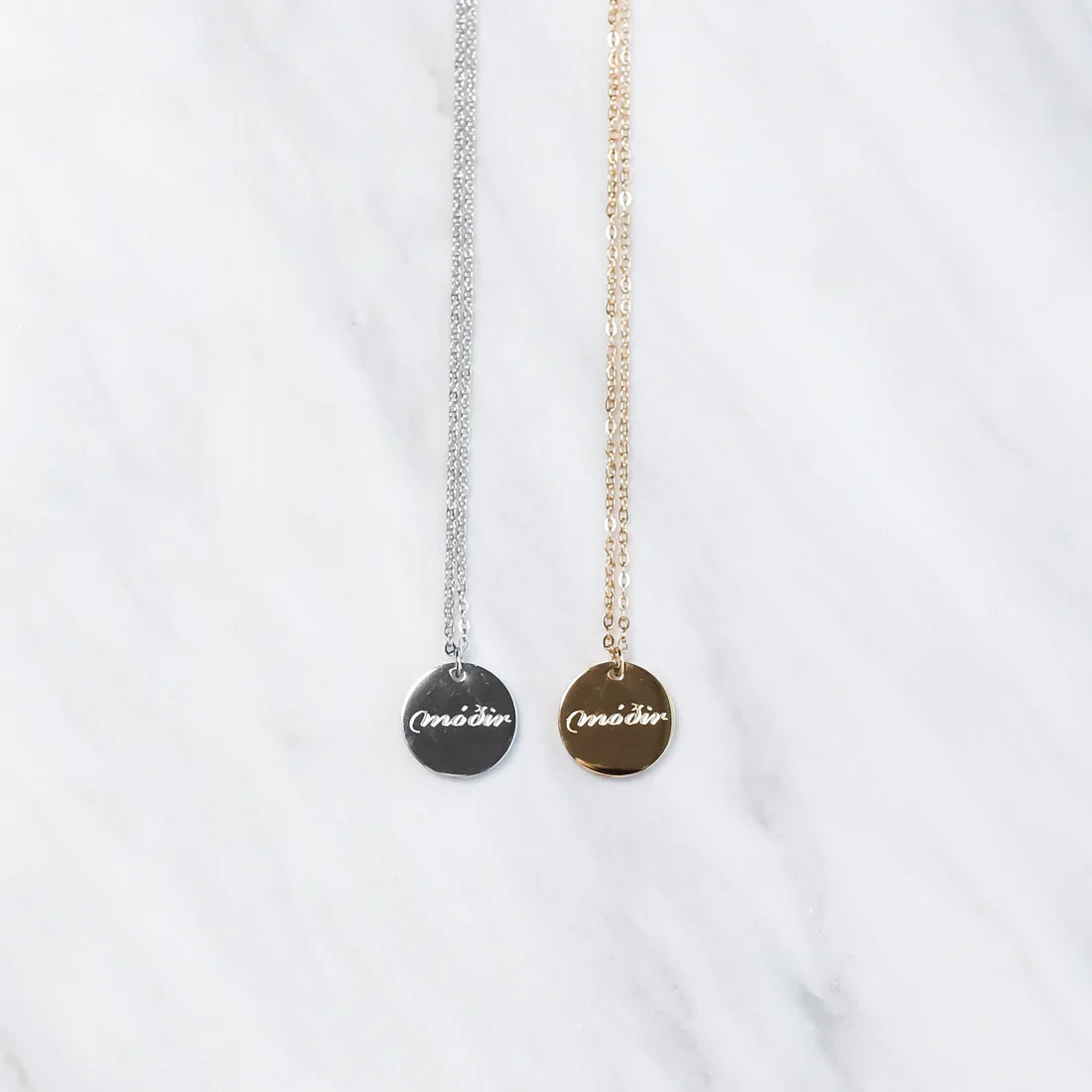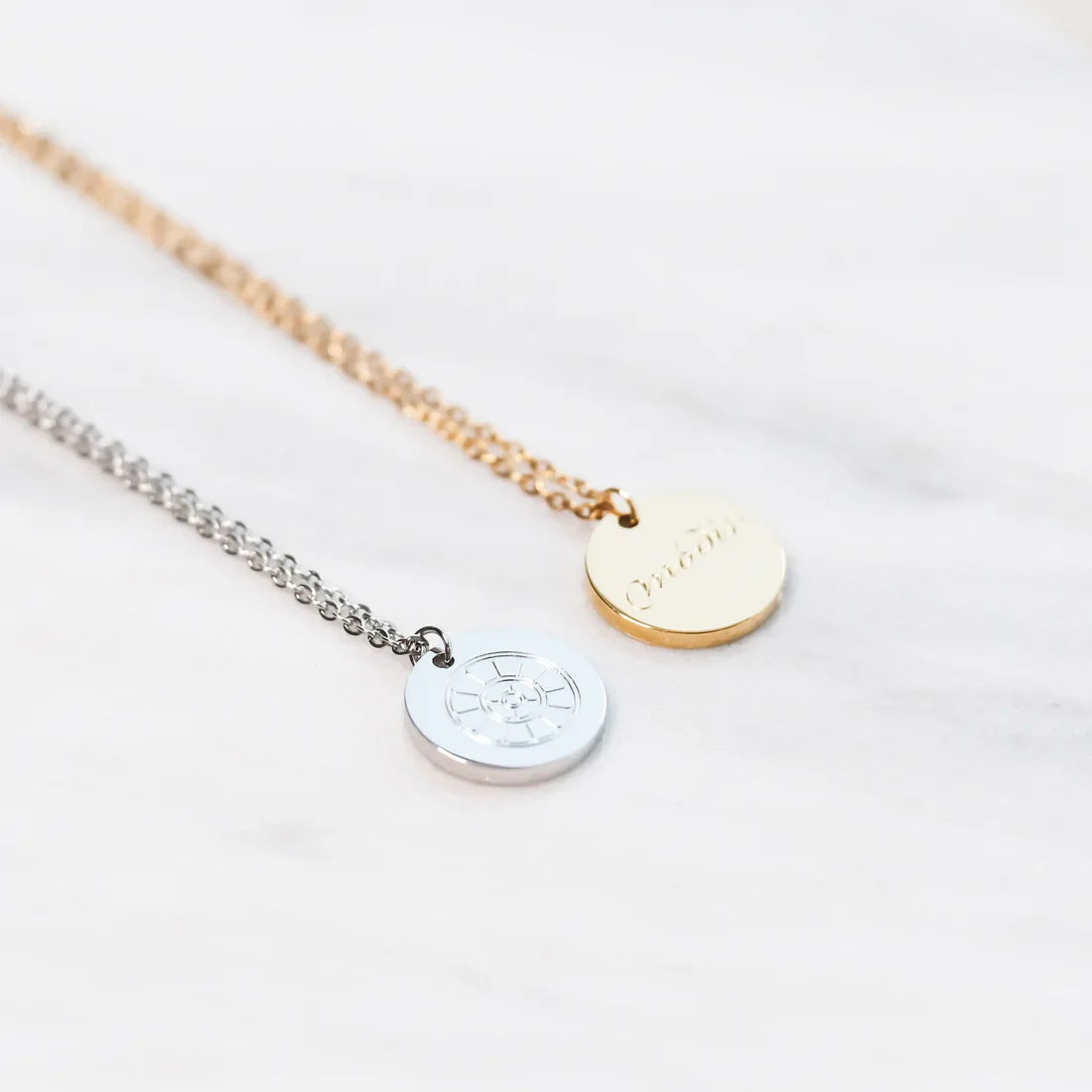 Hálsmen með einstöku tákni úr jógafræðunum. Grafið er í plötuna beggja megin.
