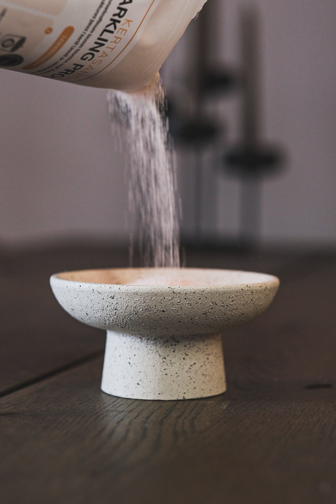 Tvennan inniheldur skál & poka af kertasandi - Tvenna sem fer vel á hverju heimili!